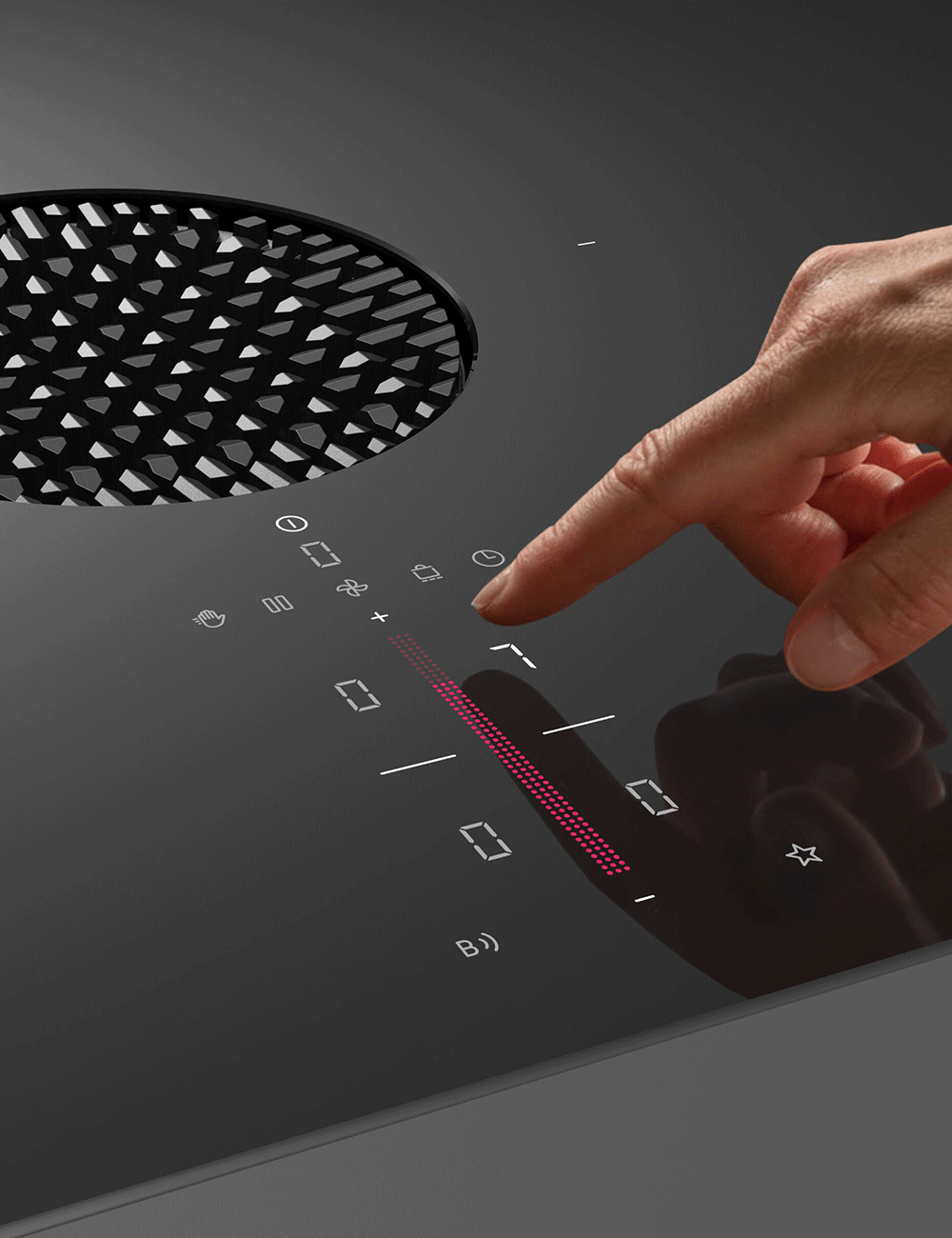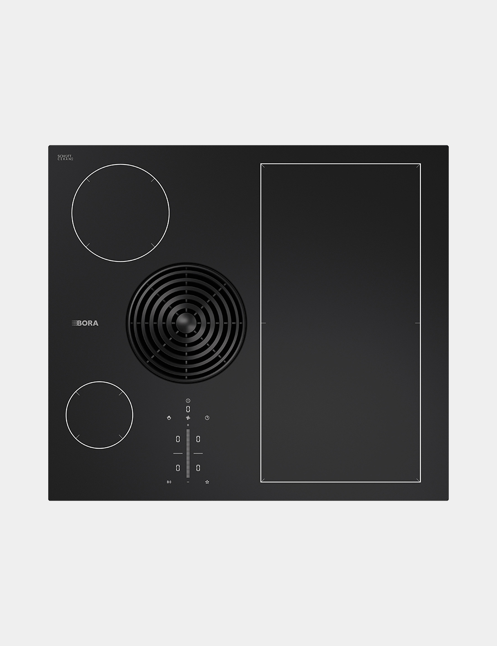 Con solo 58 cm de ancho, BORA S Pure se convierte en una solución idónea para cocinas pequeñas sin perder prestaciones. Su diseño permite instalar un horno con convección guiada sin necesidad de placa intermedia, a la vez que incorpora funciones auxiliares como «freír» y «café» para un uso más práctico en el día a día.