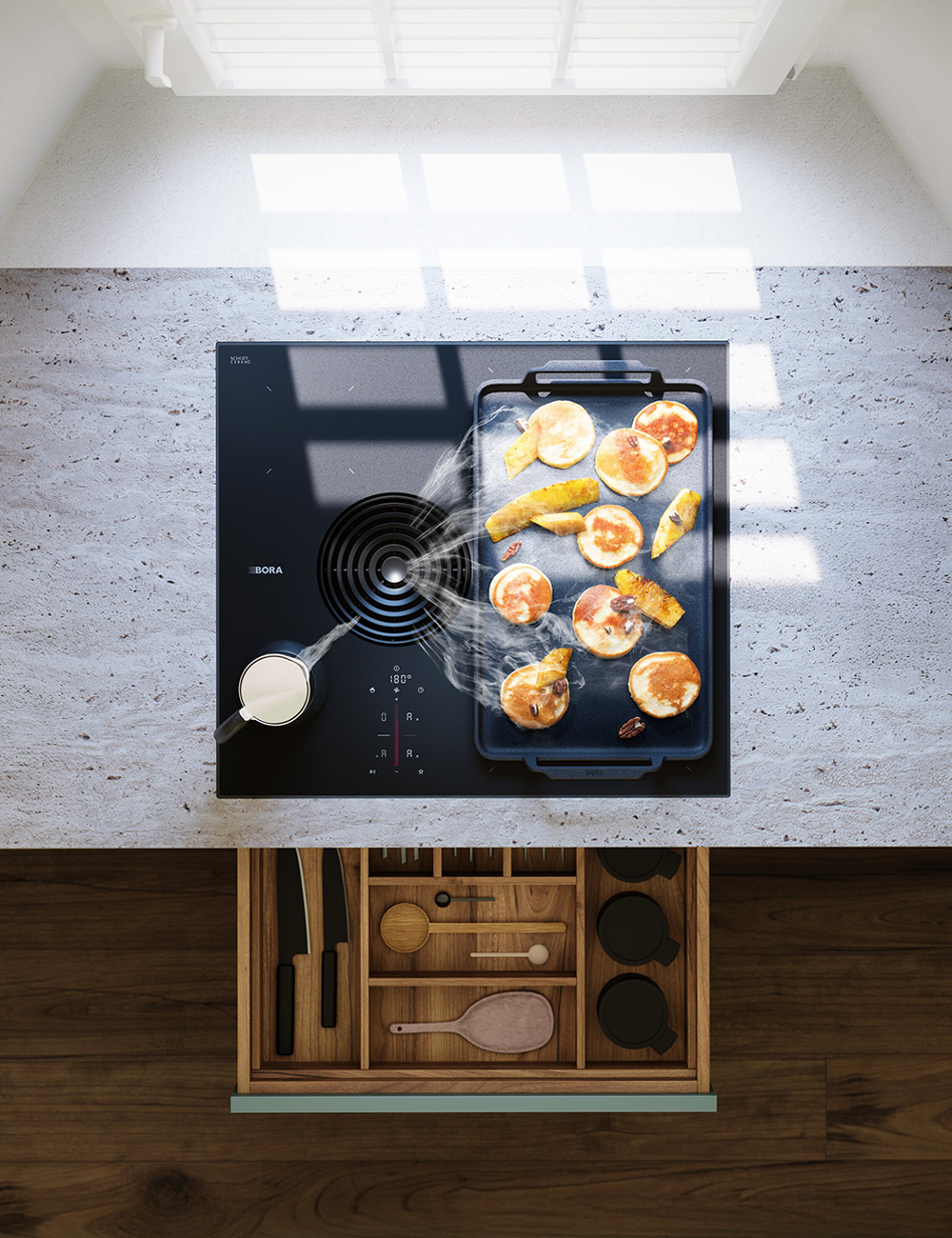 Inicialmente, BORA se destacó por sus sistemas de extracción de superficie que aspiran los vapores de cocción hacia abajo utilizando tecnología avanzada. Luego ampliaron su cartera con el BORA X BO, un horno de vapor profesional para el hogar, el multicajón BORA y sistemas de refrigeración, congelación e iluminación. Estos productos son conocidos por su alto rendimiento y fácil limpieza.