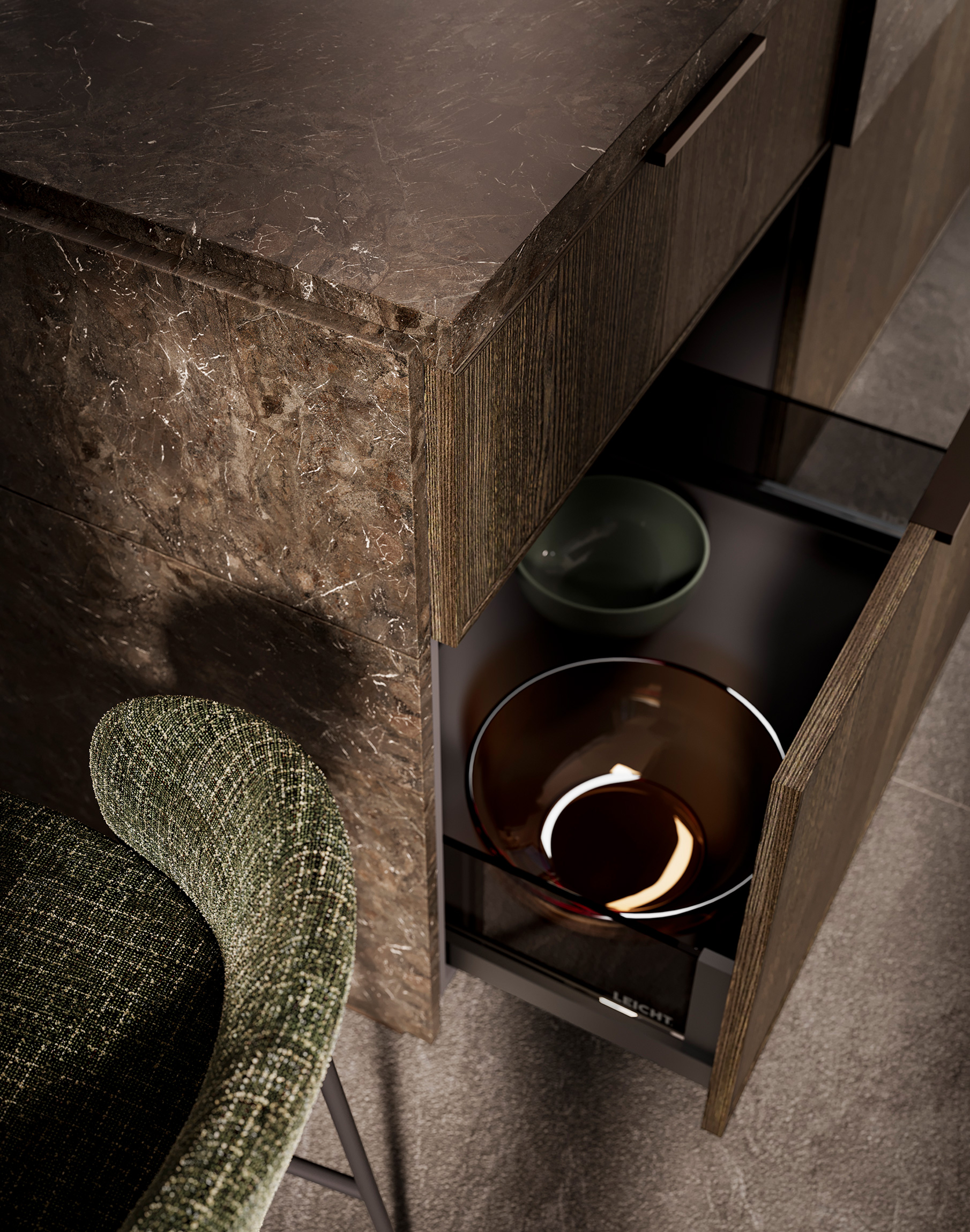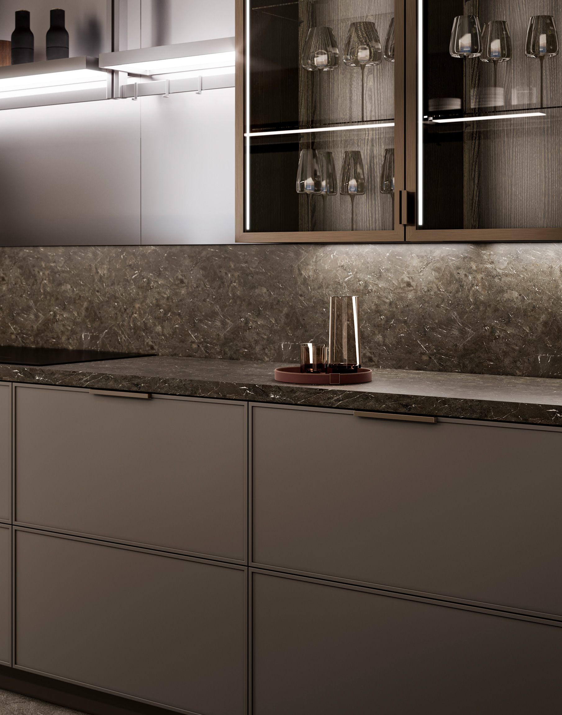 Disponible en bronce oscuro y negro acero, este tirador completa la propuesta de WAKUU, uniendo funcionalidad y diseño en un mismo gesto. Con ello, LEICHT reafirma su capacidad de ofrecer soluciones que combinan innovación, coherencia estética y máxima calidad.